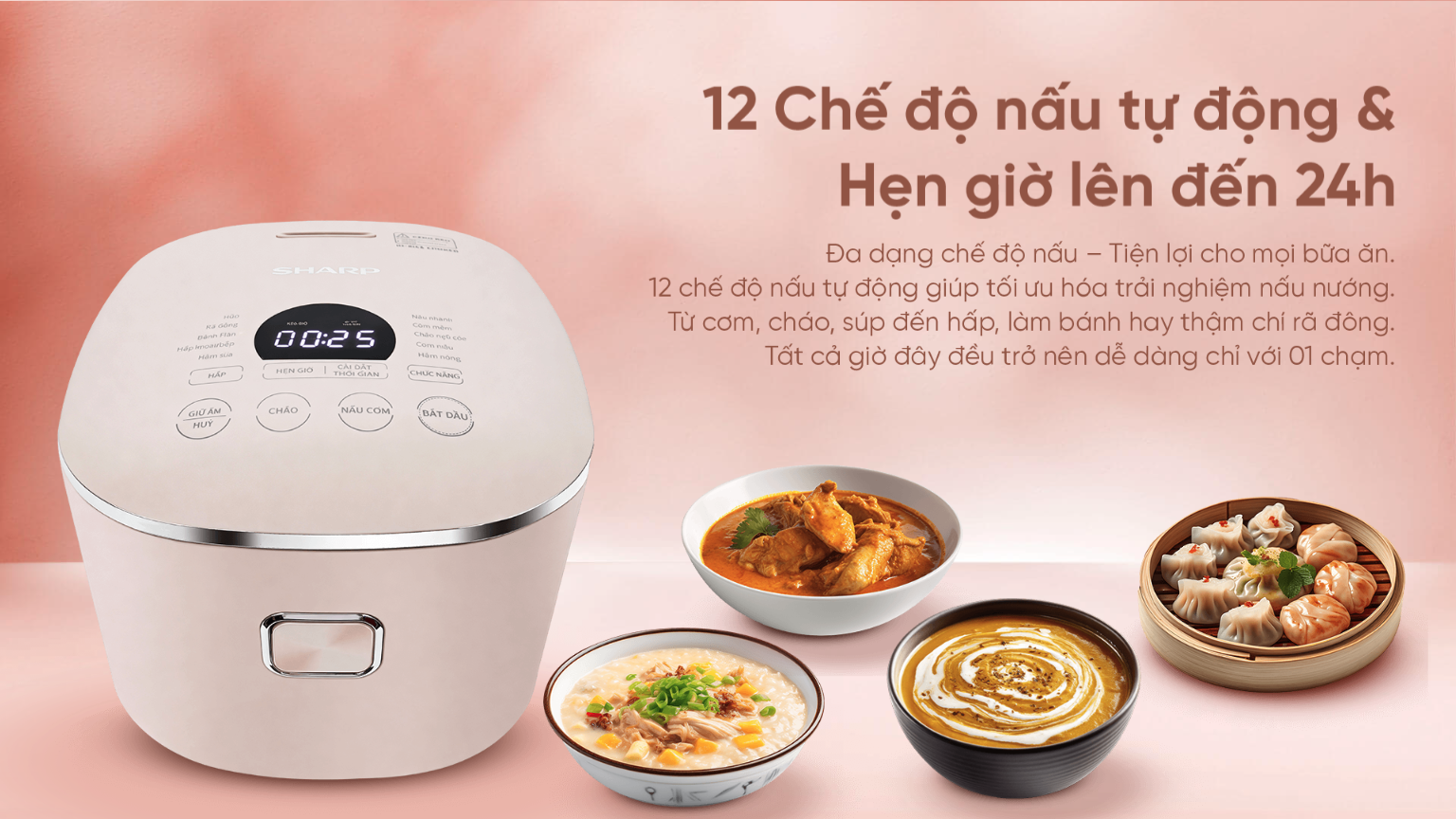 - Hẹn giờ nấu lên đến 24 giờ.