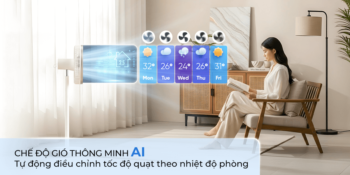 - Chế độ thông minh: Điều chỉnh tốc độ gió theo nhiệt độ phòng.